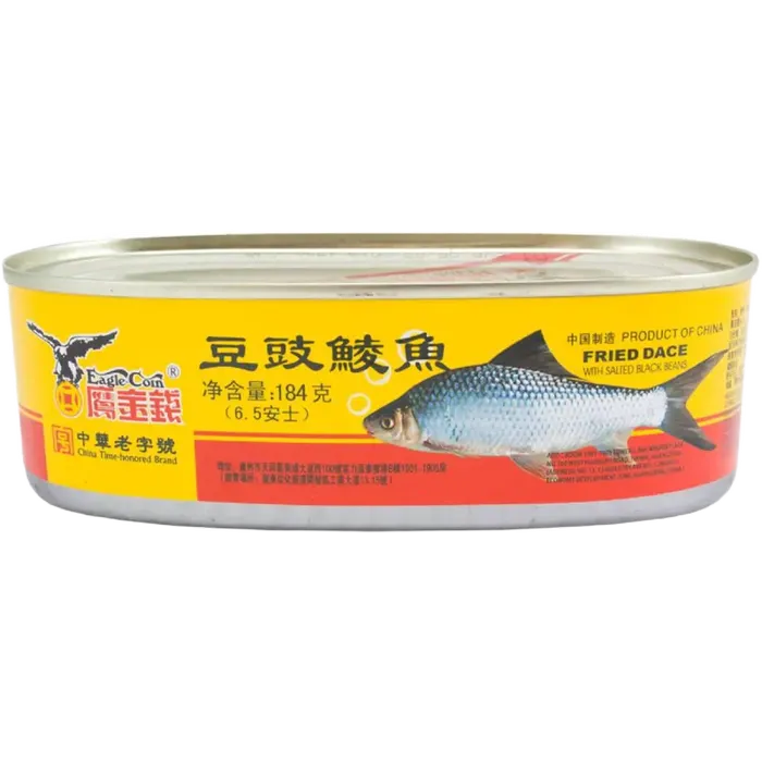 Dieses typisch chinesische Fischgericht besteht aus dem in China beliebten Haselfisch (Cirrhinus molitorella), der in Sojaöl knusprig frittiert und mit salzigen fermentierten schwarzen Bohnen sowie asiatischen Gewürzen kombiniert wird. Die Delikatesse überzeugt durch ihren intensiven, salzigen und umami-betonten Geschmack und passt hervorragend zu Reisgerichten oder asiatischen Gemüsepfannen.