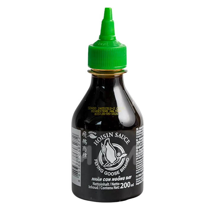 FLYING GOOSE Hoisin Sauce 200ML ist eine süß-würzige asiatische Sauce mit aromatischen Noten von Sternanis und Knoblauch. Diese vielseitige Sauce eignet sich perfekt als Glasur für Fleisch, Dip für Sommerrollen oder Würzsauce für asiatische Pfannengerichte.